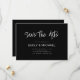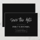 Une simple carte de faire-part de mariage élégante et moderne à date réservée. Personnalisez ce design minimaliste d'invitation de mariage noir et blanc avec vos informations personnelles et votre message.