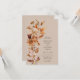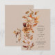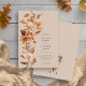 Ce faire-part de mariage élégant et rustique d'automne présente des feuilles de couleur orange brûlé et terracotta peintes à la main à l'aquarelle, des dahlias crème et beige, et de belles roses couleur rouille parfaites pour un mariage d'automne ! Le verso de l'invitation a un fond taupe simple avec un bouquet coordonné et un monogramme de mariage.