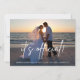 Nos faire-part de mariage chics et modernes sont le moyen idéal de faire savoir à vos amis et à votre famille que vous avez fait une fugue, une cérémonie secrète ou un mariage intime ! "C'est officiel" est superposé en lettrage blanc manuscrit de style pinceau sur votre photo horizontale ou paysage préférée en plein saignement. Personnalisez avec vos noms et dates de mariage ainsi qu'un message personnel au verso