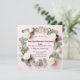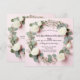 Cette conception de faire-part de mariage intemporel présente une délicate bordure florale de roses blanches, de gypsophile et de feuilles d'eucalyptus sur un fond rose pastel doux. Parfait pour les couples qui recherchent un thème de mariage classique et romantique
