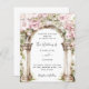 Une grande arche en marbre décorée de fleurs roses. Personnalisez et ajoutez les détails de votre fête. 1 feuille = 1 invite imprimé bord à bord