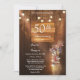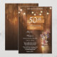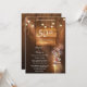 Inclus dans cette carte d'invitation, un fond en bois rustique orné de guirlandes lumineuses et un simple mais magnifique pot rempli de fleurs fraîches.