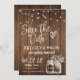 Cette conception présente un fond en bois rustique avec des guirlandes lumineuses suspendues et des pots Mason vintage et des fleurs. Personnalisez ceci pour n'importe quelle occasion, mais idéal pour un faire-part de mariage pour un mariage champêtre à venir !