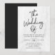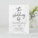 Faire-part de mariage moderne élégant avec une police d'écriture tendance, un fond en marbre blanc et des espaces réservés pour votre invitation de mariage personnalisée. Le verso de l'invitation peut être modifié pour correspondre à la couleur de votre choix grâce à l'outil de personnalisation.