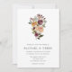 D'élégantes invitations à des mariages fleuris ou des mariages d'automne ou d'hiver présentent vos détails surmontés d'une pochette de roses d'aquarelle, de mamans et de verdure aux couleurs d'automne rustiques, y compris la pêche, l'ivoire, le rougissement, le bordeaux et le vert.