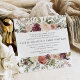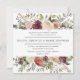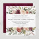 Notre faire-part de mariage Rustic Bloom dans un format carré unique encadre vos détails mariages avec une bordure supérieure et inférieure de fleurs d'aquarelle peintes et de feuillage dans des tons luxuriants d'automne de marsala, bordeaux, roux et ivoire. Un choix rustique mais élégant pour les mariages d'automne et d'hiver.