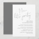 Voici la carte d'invitation de mariage en fuite, avec un design minimaliste / minimaliste de couleur gris foncé (Maintenant faisons la fête)