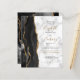Le bord gauche de cette élégante faire-part de mariage moderne est orné d'une bordure en aquarelle noire ornée d'une parties scintillant en faux or. Le texte personnalisable combine écriture manuscrite couleur or avec cuivre noir et polices italiques sur un arrière - plan en marbre gris et blanc. L'envers est assorti d'un design d'agate noir et or.