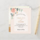 Un arrière - plan d'or rose roux avec une arche. Décoré d'or rose et de fleurs roses, de fleurs roses et de verdure d'eucalyptus vert aquarelle. Personnalisez et ajoutez vos noms et détails. Retour : ajoutez votre photo. 1 feuille = 1 invite imprimé bord à bord.