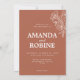 Faites une impression intemporelle avec ce faire-part de mariage en terre cuite minime, avec des lignes florales blanches dans le coin et une disposition propre et équilibrée. Ce design allie simplicité moderne et élégance terreuse, parfait pour les couples contemporains. 🌸 Design Points forts : Teracotta chaude arrière - plan Elégant angle illustration florale Clear serif et italic typefaces Entièrement modifiable détails de l'événement