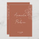 Célébrez votre amour avec ce faire-part de mariage en terre cuite moderne avec des noms de polices de caractères élégants et des illustrations de lignes florales minimalistes. L'arrière - plan rouille chaleureux et le texte blanc offrent un contraste élégant qui allie charme rustique et esthétique contemporaine. 🌸 Caractéristiques du design : Noms manuscrits en calligraphie moderne Art à ligne florale blanche sur une chaude terre cuite arrière - plan Une typographie simple et propre pour les détails clés de l'événement Un équilibre parfait entre rustique et chic 🎯 Parfait Pour : mariages modernes, thèmes floraux, amateurs de papeterie minimaliste, mariages automates ou extérieurs