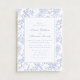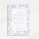 Invitation vos proches dans le style avec ce faire-part de mariage à toile fleurie bleue. Le design se compose d'un délicat motif de toile botanique bleu doux, créant un look intemporel et romantique. Parfait pour les mariages classiques, vintages ou élégants, cette invitation donne le ton d'une célébration sophistiquée et feuille une impression durable sur vos invités.