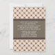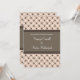 Faire-part de mariage tendance et chic Fancy Lattice avec un cercle élégant et diamant clouté motif sur un arrière - plan pêche dynamique avec une large bordure brune bicolore. Cette élégante invitation de mariage est parfaite pour un mariage moderne. Facile à customiser, il suffit d'ajouter les détails de votre mariage dans les champs de texte fournis. Cliquez sur "Customiser" pour trouver d'autres options de personnalisation.