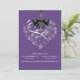 Ce faire-part de mariage élégant magnifique comporte une forme de coeur remplie de fleurs blanches sensibles et un ruban graphique et un arc de satin noir. Moderne et romantique ceci préparera certainement le terrain pour votre jour spécial. Facilement customisé. Un bon nombre de couleurs à choisir de. (prune)