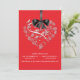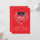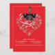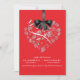 Ce faire-part de mariage élégant magnifique comporte une forme de coeur remplie de fleurs blanches sensibles et un ruban graphique et un arc de satin noir. Moderne et romantique ceci préparera certainement le terrain pour votre jour spécial. Facilement customisé. Un bon nombre de couleurs à choisir de. (rétro rouge)