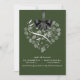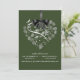 Ce faire-part de mariage élégant magnifique comporte une forme de coeur remplie de fleurs blanches sensibles et un ruban graphique et un arc de satin noir. Moderne et romantique ceci préparera certainement le terrain pour votre jour spécial. Facilement customisé. Un bon nombre de couleurs à choisir de. (vert forêt)