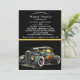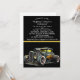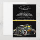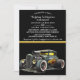 Hot Rod faire-part de mariage incendie a une flamme orange brûle et autour d'une vieille voiture. En bas au milieu et un arrière - plan noir avec un endroit pour mettre tout votre texte invitation. Ce design unique combine un faire-part de mariage formel avec une illustration vibrante de canne chaude. La section supérieure présente des détails sur son nom et son nom célébration mariage le "samedi 18 janvier 20XX" à Vancouver, en Colombie-Britannique. Ci-dessous, une canne chaude puissante et de couleur vive avec moteur exposé et tuyaux d'échappement avance, créant un contraste saisissant de thèmes. tous personnalisables.