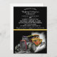 Hot Rod faire-part de mariage incendie a une flamme orange brûle et autour d'une vieille voiture. En bas au milieu et un arrière - plan noir avec un endroit pour mettre tout votre texte invitation. Ce design unique combine un faire-part de mariage formel avec une illustration vibrante de canne chaude. La section supérieure présente des détails sur son nom et son nom célébration mariage le "samedi 18 janvier 20XX" à Vancouver, en Colombie-Britannique. Ci-dessous, une canne chaude puissante et de couleur vive avec moteur exposé et tuyaux d'échappement avance, créant un contraste saisissant de thèmes. tous personnalisables.