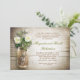 Fond en bois rustique romantique et pot de maçon avec des fleurs blanches pour une fête d'anniversaire de mariage ou un dîner d'anniversaire de mariage. Je suggère un beau papier texturé lin pour ce design.
