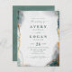 Aquarelle Ethérée Abstraite Eucalyptus Green Wedding Invitations. Cette invitation de mariage moderne est magnifiquement peinte à la main avec des couleurs riches qui sont parfaites pour l'été ou l'automne. Montré dans la palette de couleurs Mariage Eucalyptus colorway of : Eucalyptus Green, Pine Dark Green, 24k Gold, Enchanted Dark Navy Blue et Misty Mint Green. Avec des détails de feuille de parties scintillant métal d'or, et une police de script de signature magnifique avec des queues, la collection de mariage d'aquarelle éthérée est sûr de rendre votre mariage mémorable et beau! Pour en savoir plus, recherchez les collections mariages 2021 de Chic Paperie pour des designs plus tendance et palettes de couleurs mariages pour cette année.
