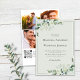 Offrez-vous un cadre romantique pour votre journée de mariage grâce à ce design moderne et abordable avec des feuilles d'eucalyptus aquarelle. Il y a de l'espace sur le dos pour quatre photos et votre code QR orientant les invités vers votre site mariage. **VEUILLEZ LIRE AVANT DE COMMANDER** 1. Si vous effectuez des modifications et que la conception est rognée ou ne s'affiche pas correctement à l'écran, veuillez utiliser le service de conception en direct pour vous aider à la corriger. 2. Votre commande va directement aux imprimantes. Ce que vous voyez à l'écran est ce qui vous sera imprimé et envoyé. Veuillez vérifier trois fois si vous avez mal orthographié ou si vous avez mal renseigné avant de passer votre commande.