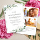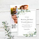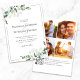 Offrez-vous un cadre romantique pour votre journée de mariage grâce à ce design moderne et abordable avec des feuilles d'eucalyptus aquarelle. Il y a de l'espace sur le dos pour quatre photos et votre code QR orientant les invités vers votre site mariage. **VEUILLEZ LIRE AVANT DE COMMANDER** 1. Si vous effectuez des modifications et que la conception est rognée ou ne s'affiche pas correctement à l'écran, veuillez utiliser le service de conception en direct pour vous aider à la corriger. 2. Votre commande va directement aux imprimantes. Ce que vous voyez à l'écran est ce qui vous sera imprimé et envoyé. Veuillez vérifier trois fois si vous avez mal orthographié ou si vous avez mal renseigné avant de passer votre commande.