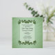 Une belle invitation verte avec des bordures de feuilles verts. Placez les prénoms du couple sur un côté avec toutes les informations et salutations du mariage de la mère et du père de la mariée. Veuillez vérifier trois fois tout votre texte.