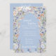 Belle faire-part de mariage bleue et fleur sauvage avec détails sur le dos