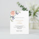 Un arrière - plan blanc chic. Décoré d'or rose et de fleurs rose vif, de fleurs roses et de lavande. Personnalisez et ajoutez vos noms et les détails du mariage. Lettres noires et dorées. Dos : couleur arrière - plan couleur or rose. 1 feuille = 1 invite imprimé bord à bord.