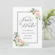 Cette invitation de faire-part de mariage présente des fleurs peintes à l'aquarelle dans des tons de rose tendre, de blanc et de feuillage vert avec un cadre rectangulaire. Pour une personnalisation plus avancée de ce design, veuillez cliquer sur le bouton "Personnaliser". Des articles assortis sont également disponibles.