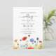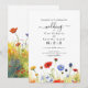 Cette superbe carte d'invitation de mariage est une pièce époustouflante et personnalisable qui capture l'essence d'une prairie ornée de fleurs aquarelles dans des tons jaune, bleu et rouge-orange. La carte présente un design magnifiquement réalisé qui met en valeur des illustrations aquarelles de fleurs sauvages disposées avec grâce pour imiter une prairie en pleine floraison. L'imagerie est complexe, capturant les détails délicats de chaque fleur. La palette de couleurs prédominante comprend des tons vibrants de jaune, créant un fond chaud et joyeux. Dispersées parmi les fleurs jaunes, on trouve des floraisons bleues délicates et des touches de rouge-orange, créant une palette de couleurs harmonieuse et visuellement époustouflante.