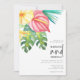 Faire-part de mariage simplement ravissant avec des fleurs tropicales. Vos noms ressortent en une belle typographie avec un grand script et. Les fleurs tropicales aquarellées, y compris les feuilles d'hibiscus et de palmier, font de ceci un choix si joli. Voir les articles coordonnés dans notre boutique.
