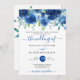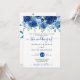 Faire-part de mariage floral aquarelle bleu marine, avec un fond texturé très clair lavé de péri. Personnalisez les noms, dates et informations.