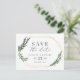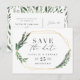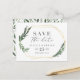 carte de faire-part de mariage floral aquarelle feuillu. Avec de belles feuilles aquarelles et une typographie moderne et audacieuse, ce faire-part de mariage est à la pointe de la tendance et parfait pour toutes les saisons. Fait partie d'une suite de mariage
