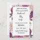 Célébrez votre union spéciale avec cette invitation de mariage luxueuse et romantique dotée d'une belle bordure florale. Le design met en valeur un cadre élégant orné de pivoines et de roses à l'aquarelle dans des tons de prune profond, de pourpre riche et de rose blush doux.