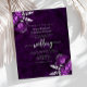Cette élégante invitation de mariage présente des bouquets floraux prune mis en valeur avec un feuillage en faux foil argenté dans deux coins, sur une image de fond d'agate aquarelle violette. Le texte gris argent personnalisable combine des polices serif, italique et manuscrites. Le verso présente un design floral et agate violet et argent assorti.