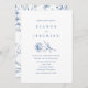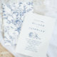 Ce chic faire-part de mariage floral bleu et blanc présente un délicat motif botanique illustré bleu avec de jolies fleurs et un feuillage feuillu romantique. Intemporelle et romantique, cette magnifique faire-part de mariage comprend une typographie classique et une belle inspiration de style chinoiserie.