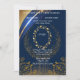 Faites une déclaration sophistiquée avec ce faire-part de mariage floral bleu et or présentant un fond bleu riche orné de fleurs botaniques dorées luxueuses. Parfait pour les thèmes de mariage classiques, royaux ou modernes, ce design personnalisable vous permet de personnaliser les noms, les dates et les détails du lieu tout en créant une suite de papeterie premium coordonnée.