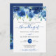 Faire-part de mariage floral bleu marine, avec un arrière - plan texturé très léger peri wash. Nom, date et information de la Personnaliser.