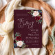 Boho Burgundy et Blush Floral Faire-part de mariage. Cette invitation est caractérisée par des roses boho bordeaux et rougis et des fleurs avec deux polices de haute classe modernes qui façonnent les tendances des événements festifs actuels et futurs.