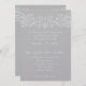 Le texte et la couleur arrière - plan sur ce faire-part de mariage floral grise argentée (grise) est entièrement personnalisable. Pour modifier le texte, utilisez les options de personnalisation. Pour des modifications plus étendues de l'invitation, y compris des modifications de la couleur, de la police, de la couleur de police ou du placement de texte arrière - plan, utilisez l'option personnaliser. Cette invitation turquoise et argentée est parfaite pour un mariage d'hiver. Bien qu'il soit actuellement customisé pour un mariage, il pourrait facilement être utilisé pour une variété d'autres occasions spéciales, y compris une fête d'hiver d'entreprise, un anniversaire spécial, un anniversaire, une douche nuptiale, une collecte de fonds.... vous décidez. Tout ce que vous avez à faire est de changer le texte.