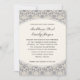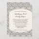 La beauté classique d'un motif damassé crée un cadre élégant autour de votre formulation sur ce motif de damas floral inspiré de la dentelle vintage. Le cadre est agrémenté d'une bordure en perle pointillée. Ce design élégant est décoré dans des tons crème clairs avec un arrière - plan de lavande gris ou poussiéreux. Le dos de l'invitation a aussi le motif. Si vous avez besoin de cet espace pour plus d'informations, vous pouvez supprimer le motif pour révéler un arrière - plan de couleur solide.