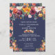Faire-part de mariage correspond à notre collection de fleurs de Paprika Bourgogne, avec une goutte florale d'aquarelle d'une magnifique palette de bordeaux, or, corail, rougis et verdure encadrant les détails faire-part de mariage avec un arrière - plan bleu marine. Tout le texte est entièrement personnalisable.
