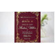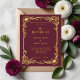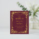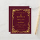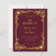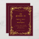 Pour un mariage de style Gatsby élégant. Arrière - plan bordeaux décoré d'un cadre de style art déco doré et fleuri. Personnalisez et ajoutez vos noms et détails. 1 feuille = 1 invite imprimé bord à bord.