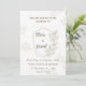 Ce faire-part de mariage au design minimaliste est orné d'un cadre doré et géométrique orné d'illustrations florales délicates. Les fleurs et les feuilles sont subtilement placés autour du cadre et des coins de la carte, créant un look élégant et sophistiqué sur un arrière - plan blanc.