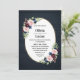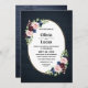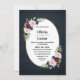 Elégant faire-part de mariage en bois de marine avec cadre géométrique or et fleurs aquarelles, parfait pour imprimer sur les cartes à la demande.