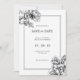 Faire-part de mariage floral gravé noir et blanc a