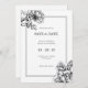 Un design floral gravé monochrome. De belles fleurs détaillées ornent les coins de la page - avec une bordure à double ligne. Le texte est simple mais sophistiqué.