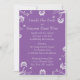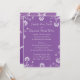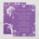 Ce faire-part de mariage entièrement personnalisable est doté d'un arrière - plan violet avec des fleurs blanches qui accentue les bords et le lettrage blanc. Personnalisez avec les noms de la mariée et de la salle, l'emplacement et l'heure de la cérémonie. Customisez la police ou tout autre élément en cliquant sur le bouton Customiser ! ppl001