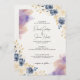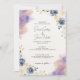 Invitation vos invités à célébrer votre journée spéciale avec cet élégant faire-part de mariage floral aquarelle. Avec un beau mélange de couleurs pastel douces, violets, bleus et dorés, cette invitation dégage un charme romantique et sophistiqué. Les délicates illustrations florales et la police de caractères moderne créent un design intemporel, parfait pour un mariage classique mais contemporain. Customisez avec vos détails mariages et rendez votre journée inoubliable avec cette invitation exquise.